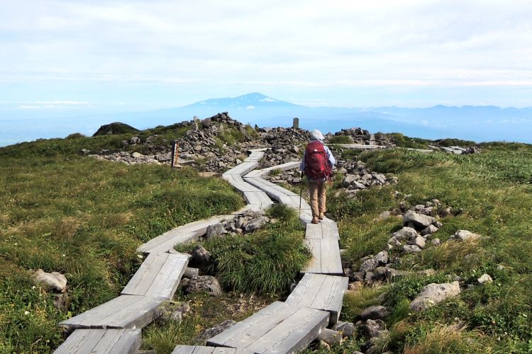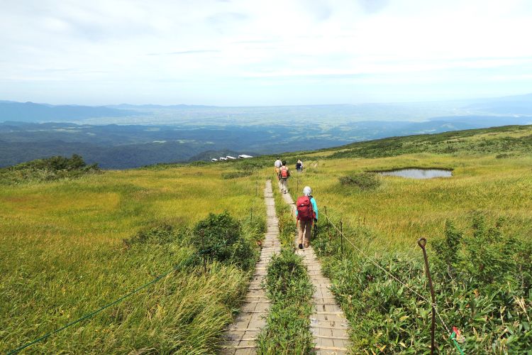 鳥海山を眺めながら大峰へ続く木道を歩く。