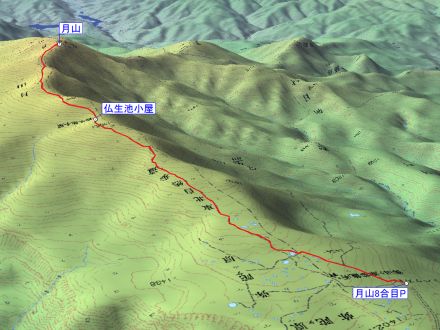 月山八合目P 5:05 ⇒ 仏生池小屋 6:45 ⇒ 7:55 月山 8:55 ⇒ 10:00 仏生池小屋 10:10 -(ベンチで休憩10分)⇒ 月山八合目P 11:55