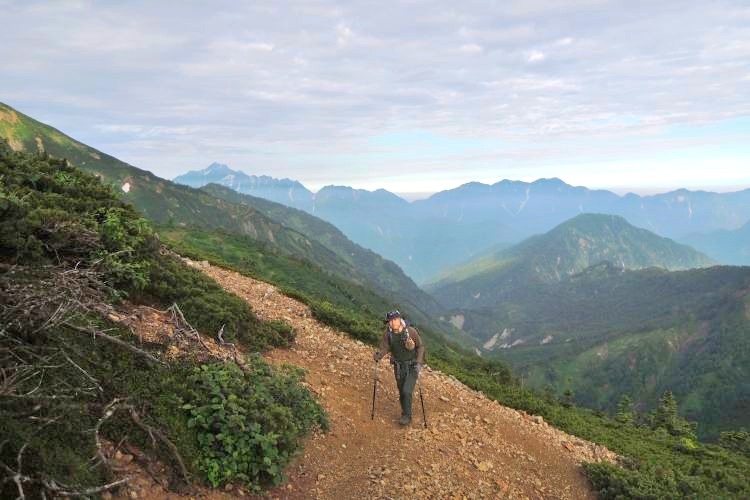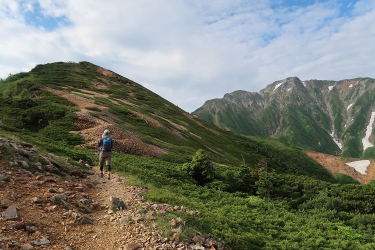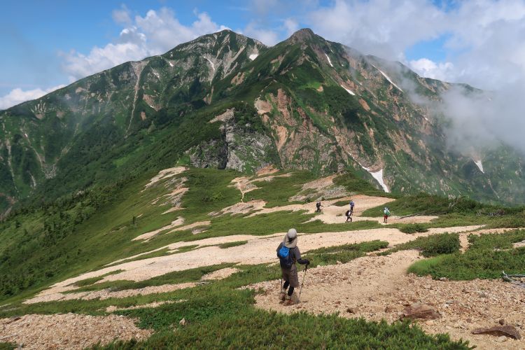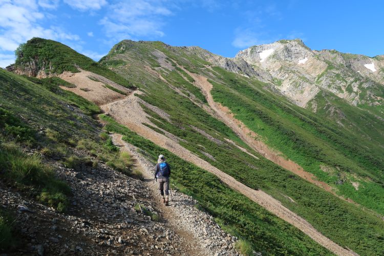 小ピークを越えて、徐々に大黒岳と五竜岳が遠くなっていく。