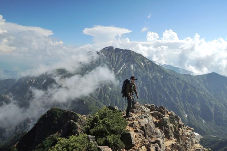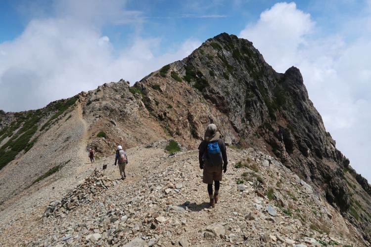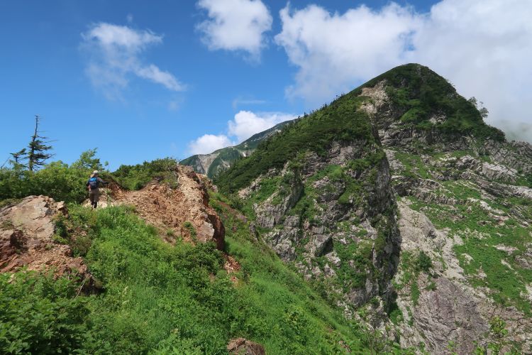 南側には五竜岳がそびえていた。牛首を過ぎると一見どこから降りるのか分からないのような険しい稜線が現れた。