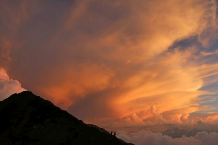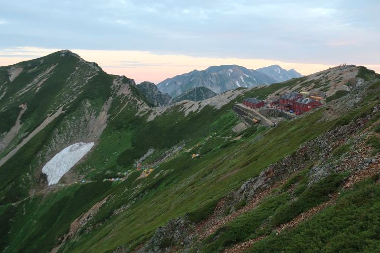 唐松岳の向こうに陽が落ちて、やっと涼しくなった。