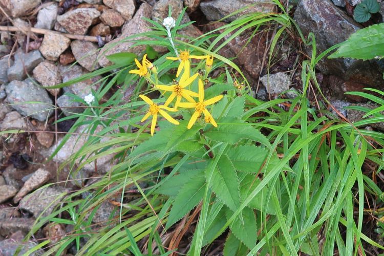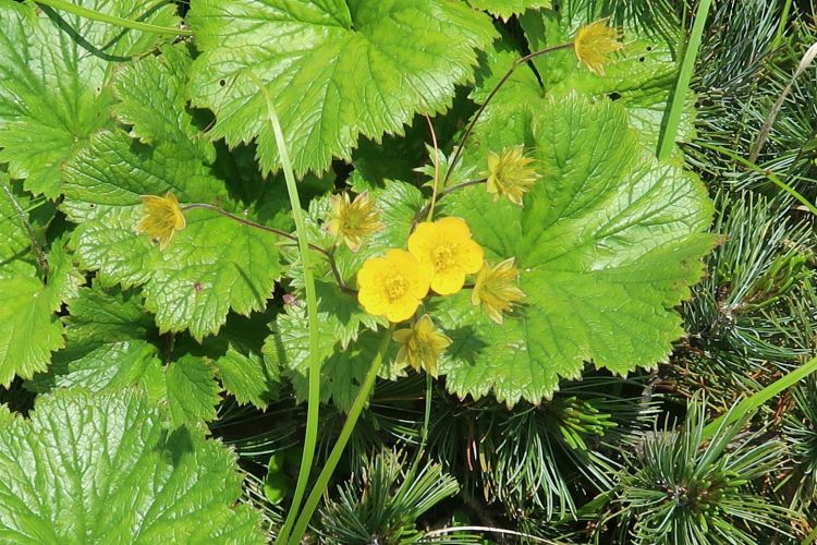 バラ科のミヤマダイコンソウ。よく似た黄色の花は多いが、本種は大きな葉ですぐ見分けがつく。