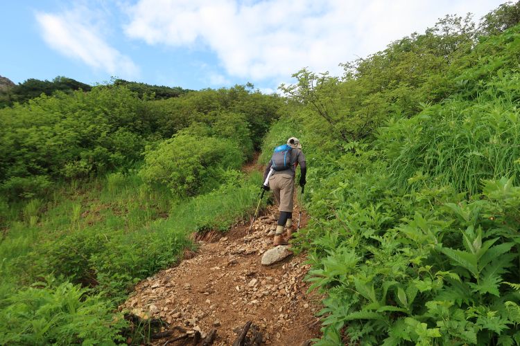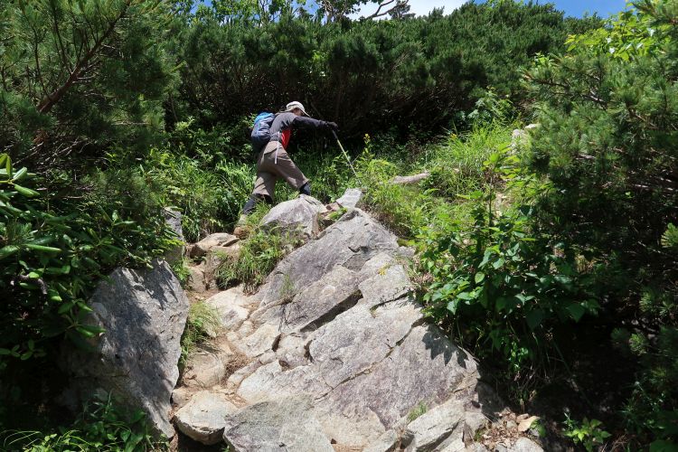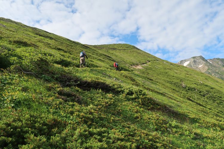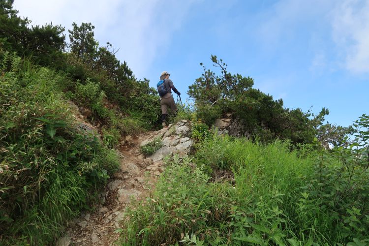 ハイマツ帯から灌木帯へ入ると上り返しが始まる。