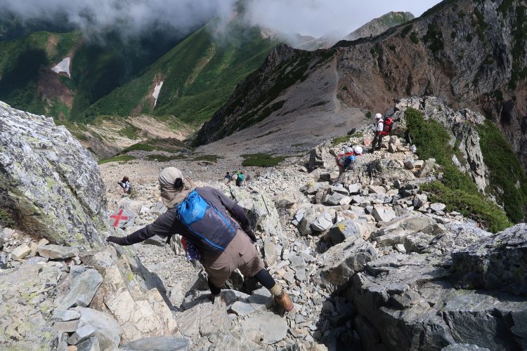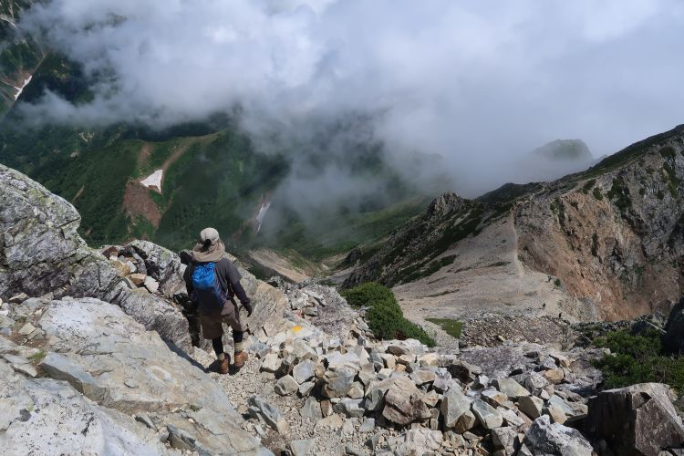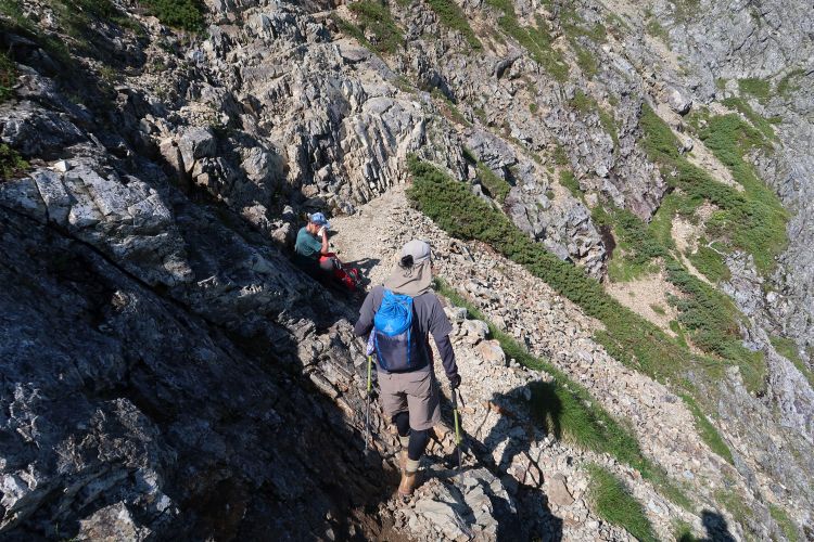 足場はしっかりしていたが、両手を使った方が安全なので、途中でストックはザックにしまった。