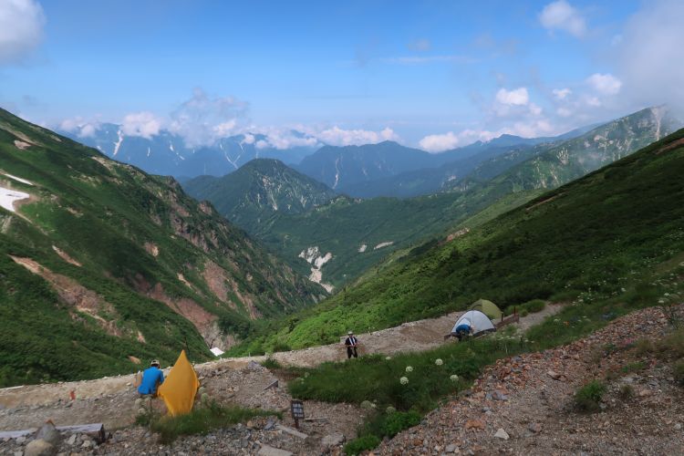 テントは撤収組が多かったようで、テント場は朝より空いていた。