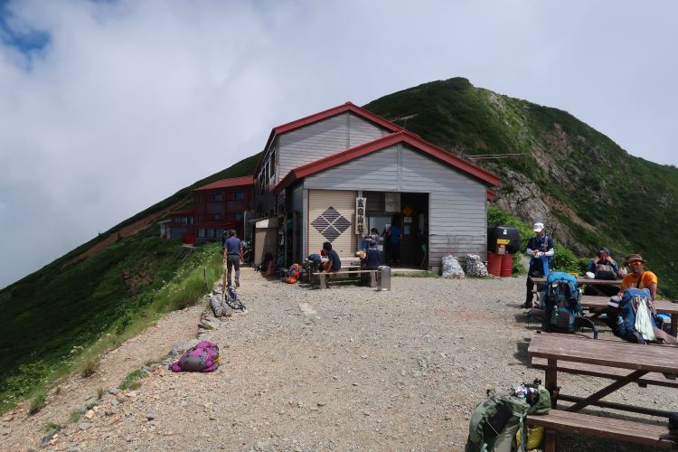 7:40 五竜山荘に到着。思った以上に登山者が多かった。