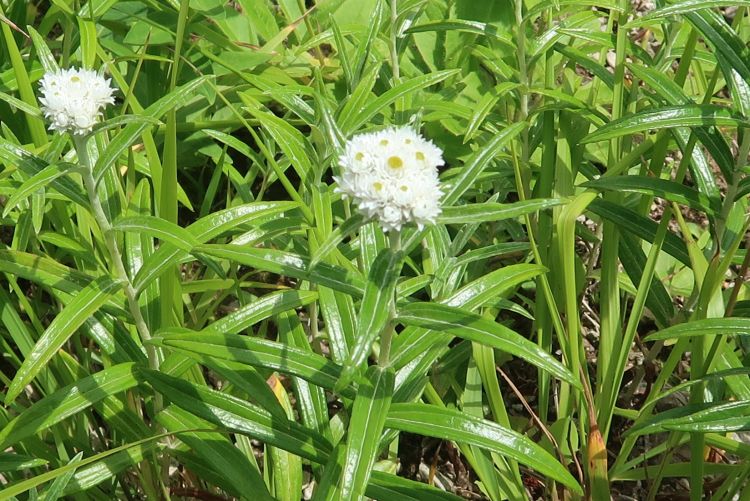 キク科のヤマハハコ。花はタカネヤハズハハコと似るが、本種の葉は大きく開く。