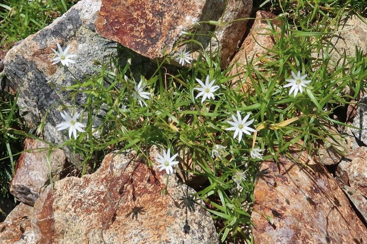 ナデシコ科のイワツメクサ。花弁は5枚だが、深く切れ込んでいるので10枚のように見える。