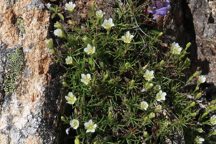 ナデシコ科のタカネツメクサ。花弁の先が割れているのでタカネツメクサだと思うが、ミヤマツメクサとほとんど区別がつかない。