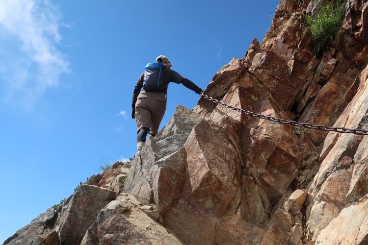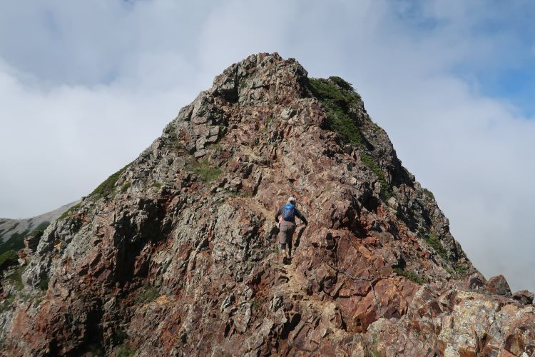 クサリの連続する岩場を上る。降りてくる登山者もいるので、クサリ場は順番を待って進んだ。