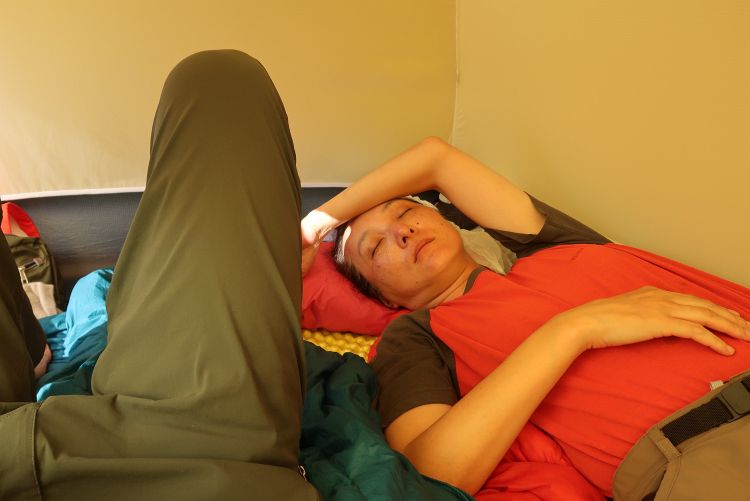 刻々と色と形を変えていく夕焼け雲をしばらく眺めていた。17:10 テントに戻って就寝。素晴らしい一日だった。