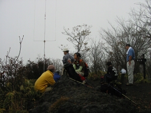 あっという間に山頂に到着。山頂ではアマチュア無線の方が簡易アンテナを設置していた。