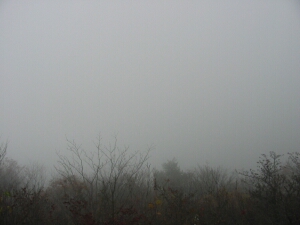小雨と濃霧で視界が悪すぎるために途中で引き返した。