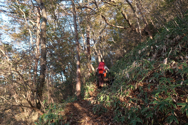 急坂を分岐まで下り、掃部ヶ岳へ向かう。