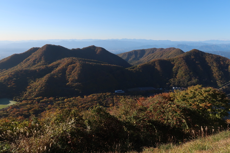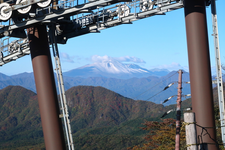 西に目をやると、ロープウェイの柱間に浅間山も見えた。