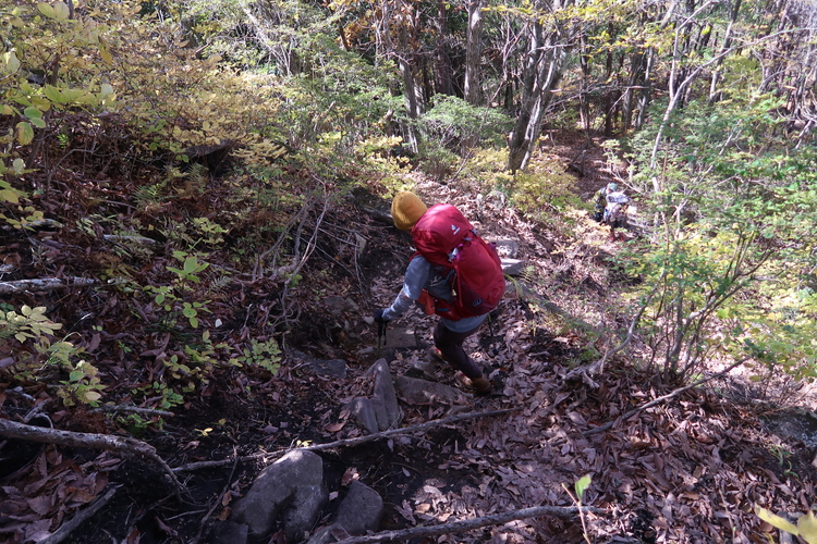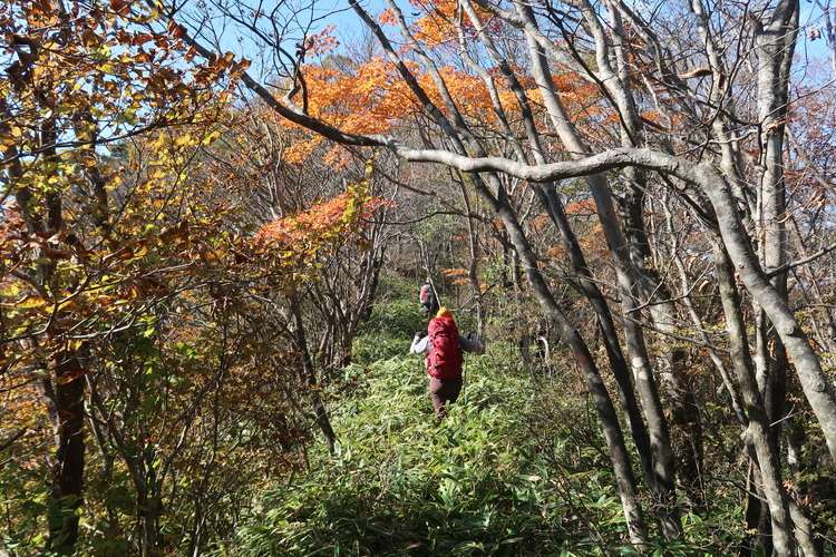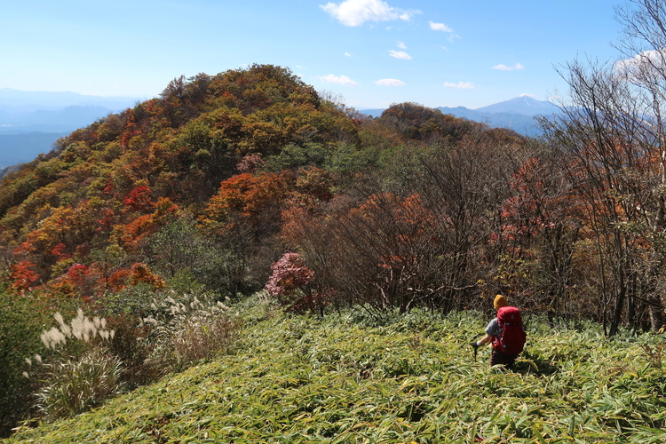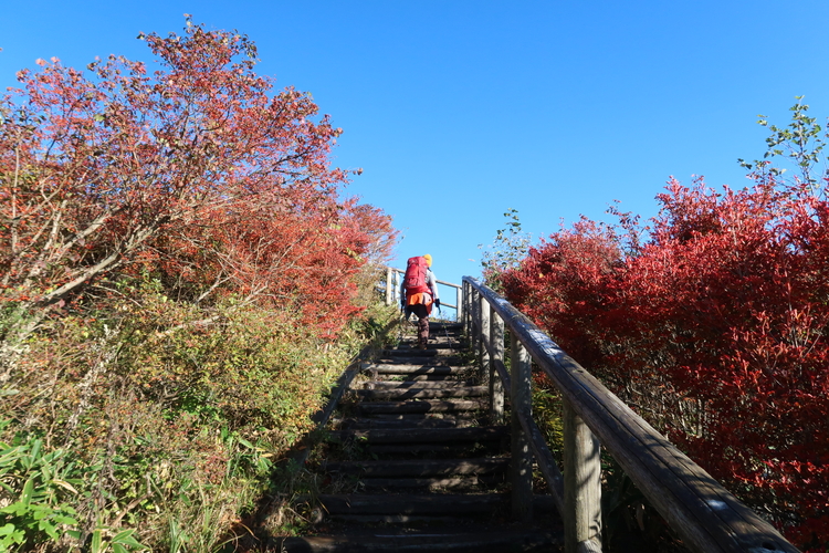 烏帽子ヶ岳から鬢櫛山までの間は、鮮やかな紅葉のオンパレードだった。