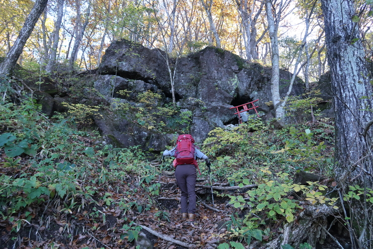 大きな岩場に赤い鳥居が見えたら山頂はもう間近。