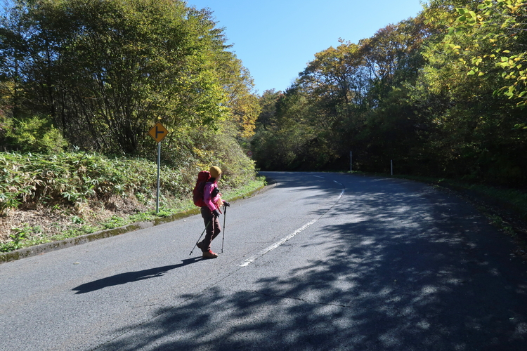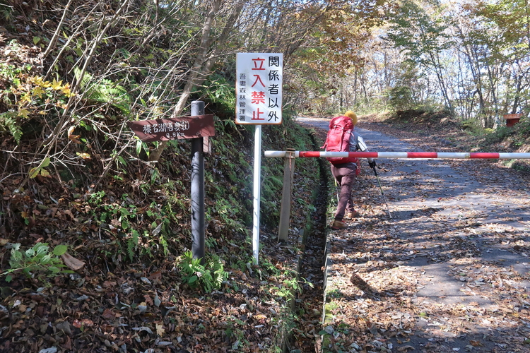 道標などは見当たらないので、とりあえず車道を烏帽子ヶ岳方面へ歩いていく。