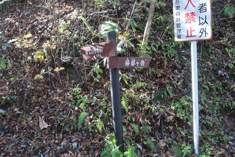 道標に近づくと、正面からは気づかなかった表示が下にあり、きちんと掃部ヶ岳を指していた。