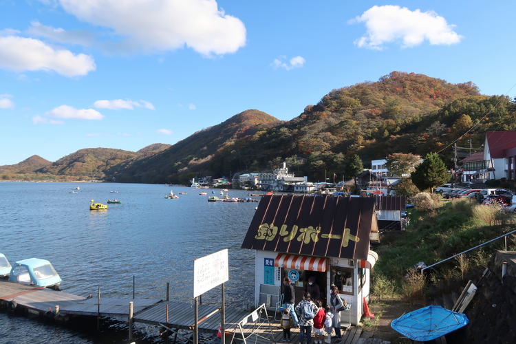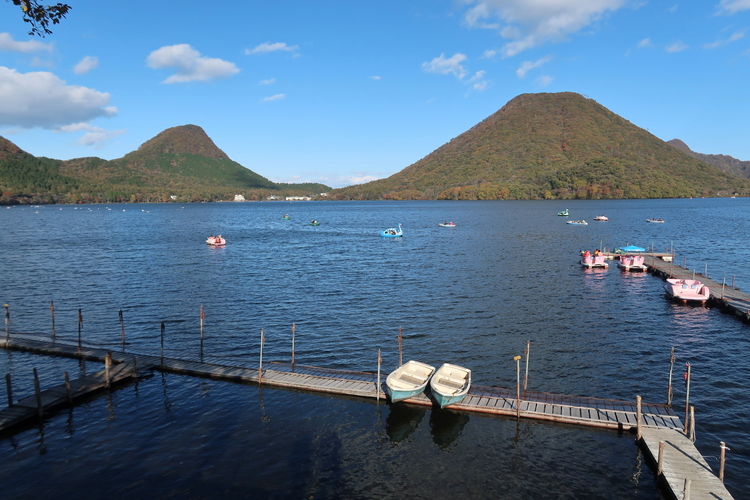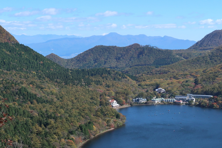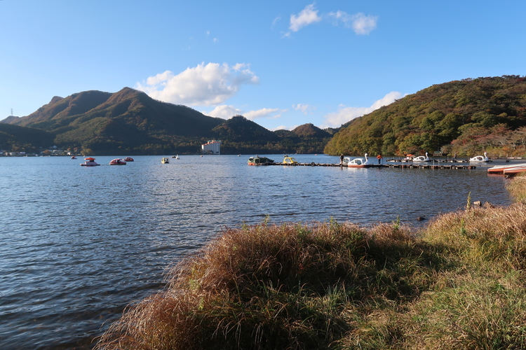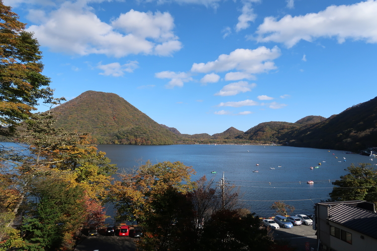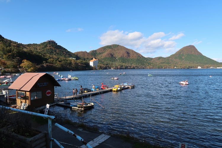 湖畔の宿記念公園から眺めた榛名湖畔。