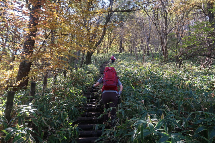 笹原の坂を九十九折に上っていく。軽装で歩く人たちを数組見かけた。