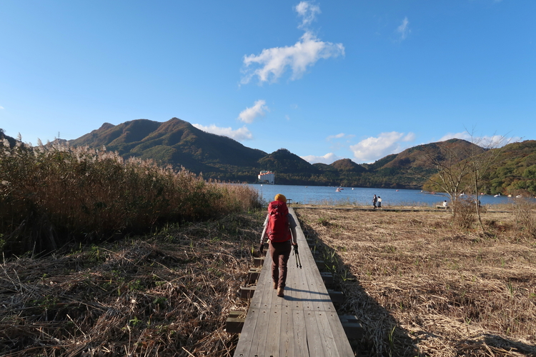駐車場のある湖畔の東側には木道があったので、最後は木道を歩いた。
