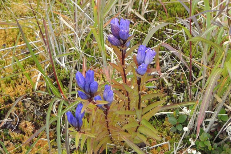 広範囲に群生していたオヤマリンドウ(御山竜胆)。秋の湿原を代表する花のひとつ。