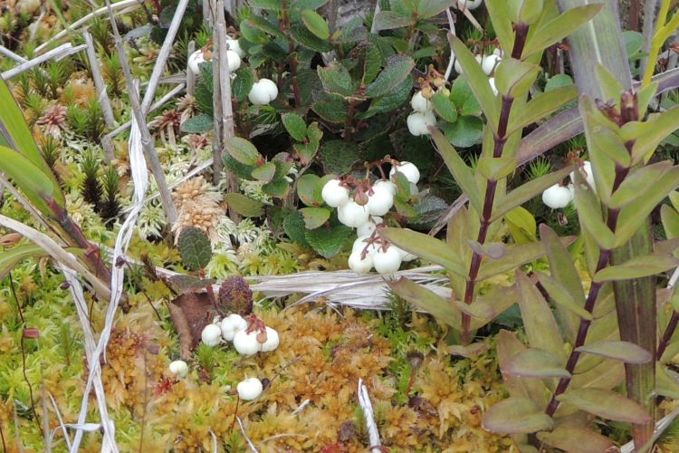 ツツジ科の常緑小低木、シラタマノキ。花期が終わった9月頃、萼が肥大して果実を覆い、白い玉状になる。