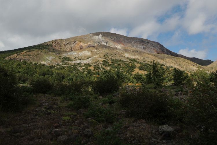 北西にそびえる一切経山。山頂から五色沼を眺めて見たかったが、縁があれば登る機会がまたくるだろう。