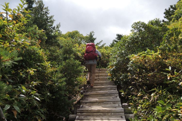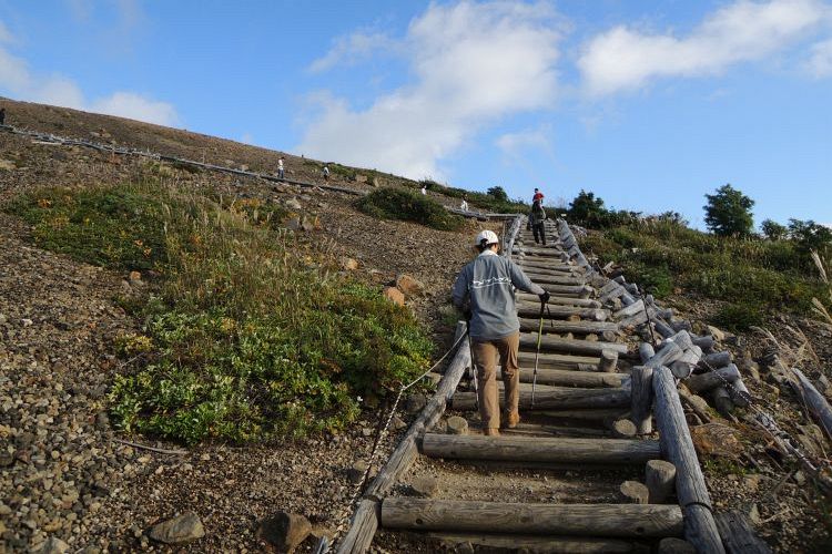 木段を上っていく。幅が広いので下りてくる人とのすれ違いに支障はなかった。