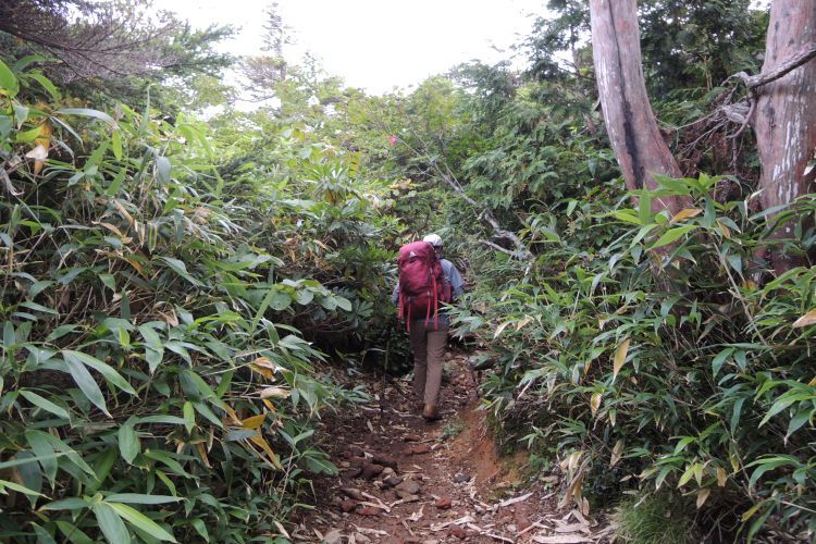 30分ほど歩いて背丈を超える笹の道を抜けると平坦な道になった。