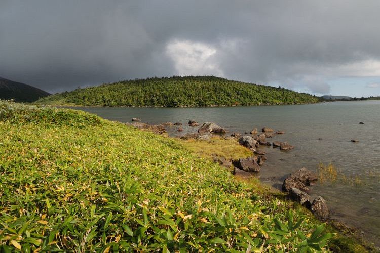 東吾妻山、前大巓、一切経山、蓬莱山(ほうらいさん)に囲まれた鎌沼は、標高1,770mの凹地にあり、鎌の形(三日月形)をしていることからその名が付けられたと云う。
