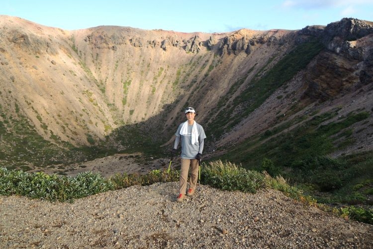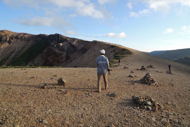 次は火口の右(南側)へ少し歩く。16時をまわってもお鉢巡りをしている人はいた。