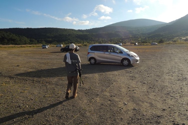 16:40 車に到着。広い臨時駐車場に残る車は数台のみ。身仕度を整えて、ラビスパ裏磐梯へ向かった。