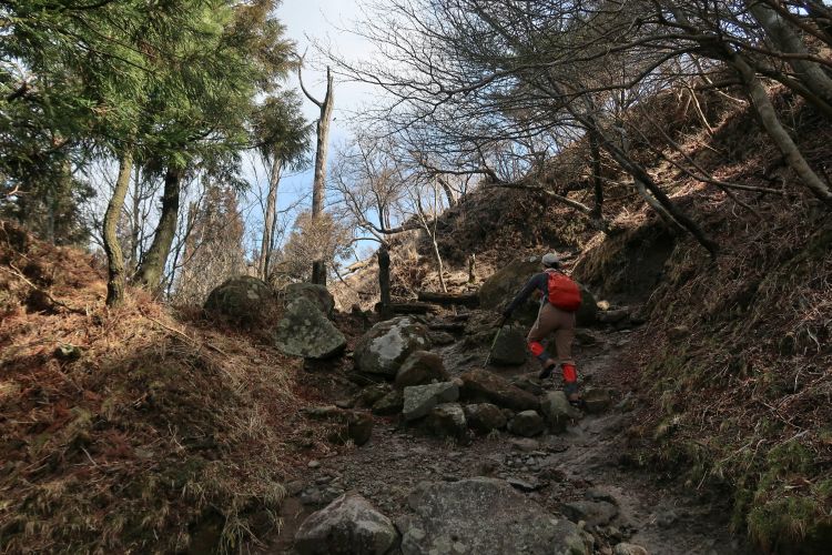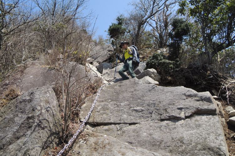 少し足場の悪い急な鎖場を上る。登山道らしくなってきた。