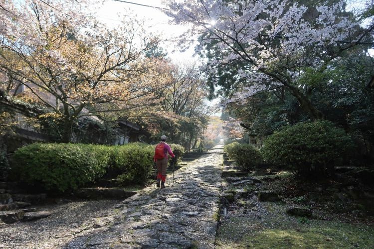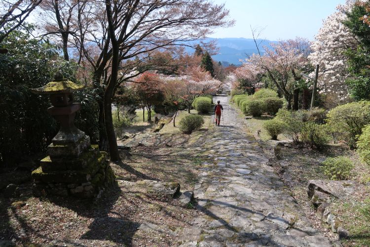 気持ちのよい石敷きの道をのんびり下った。ちなみに、この山の元の領主は豊前佐々木氏であり、宮本武蔵に敗れた佐々木小次郎も当地出身と云われる。さらに流派「巌流」は、英彦山山伏の武芸の流れを汲むという説もあるらしい。