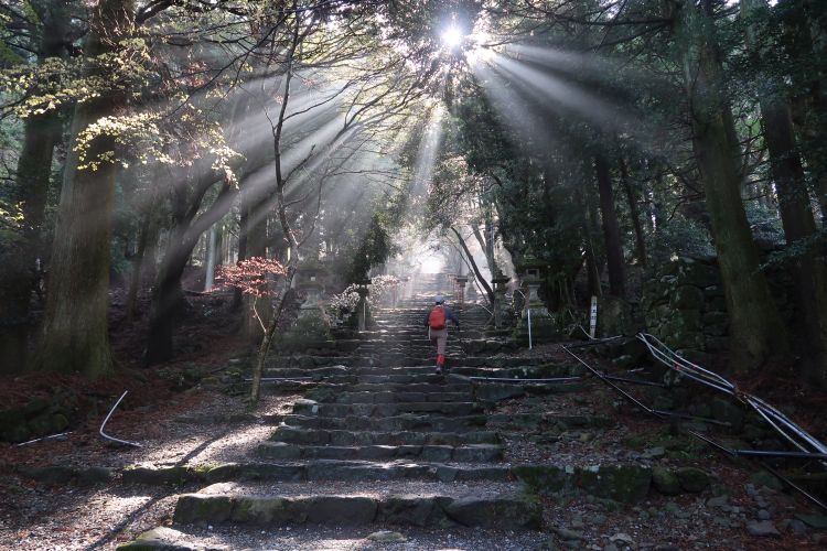 5時半起床。英彦山神宮の銅鳥居(かねのとりい)には8時過ぎに到着。予備知識はそれほどなかったが、銅鳥居から奉幣殿へ真っすぐ伸びる参道は、遠近法的な奥行きを感じさせて視覚的に心地よく、歩くほどに苔むした石畳と樹々の豊かな彩に魅了された。中岳山頂付近の荒廃ぶりには寂しいものを感じたが、山頂付近の展望は素晴らしく、南岳から鬼杉への下りには修験道の山らしい険しさもあって、歩いていて楽しかった。