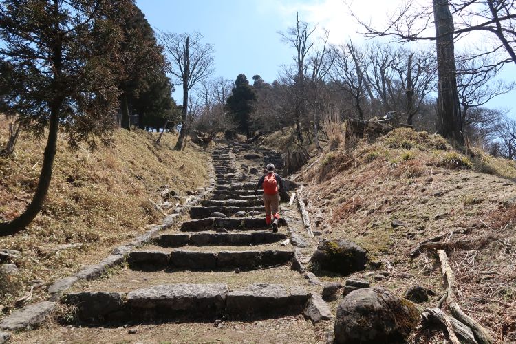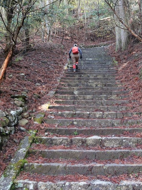 驚くべきことに、山頂直下まで大きな石で階段が整備されていた。往時の栄華が感じられた。