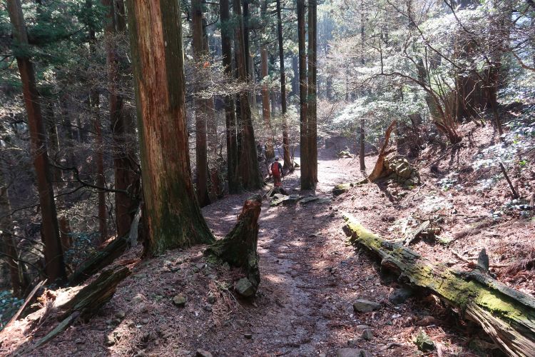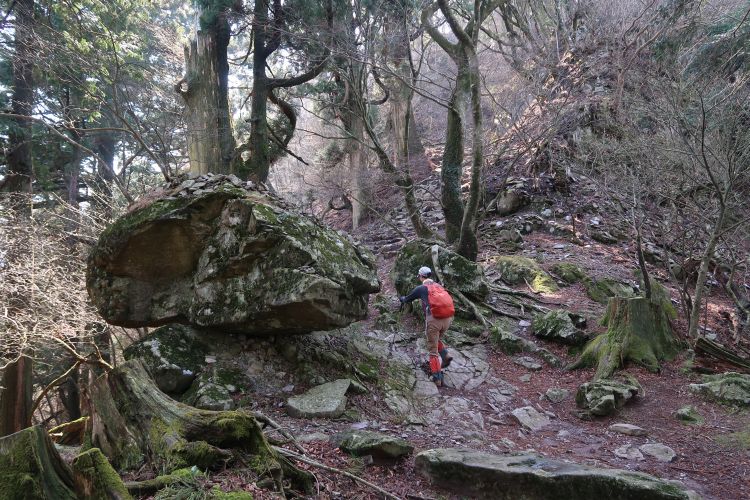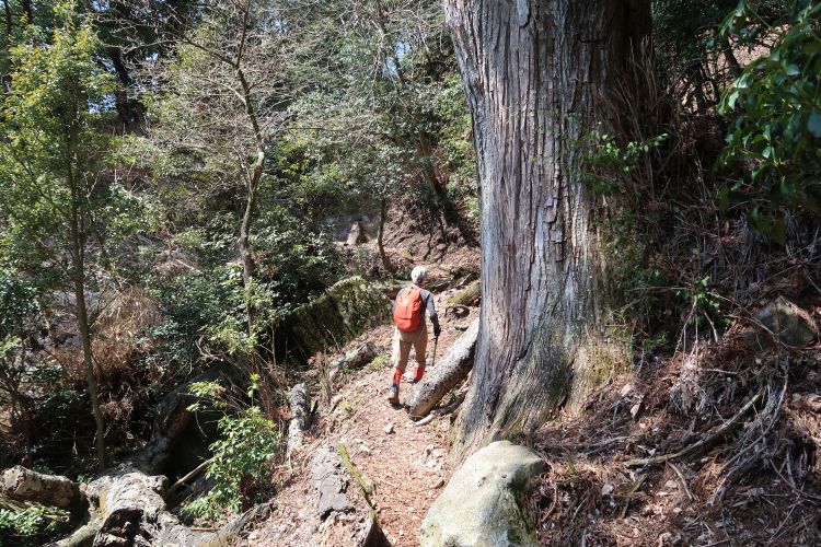 道標をたよりに鬼杉へ向かう。途中の分岐でザックをデポして進んだが、鬼杉からは引き返さずにルートに戻れる道があったので、ザック回収のためにかえって遠回りすることになった。