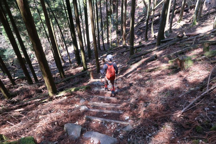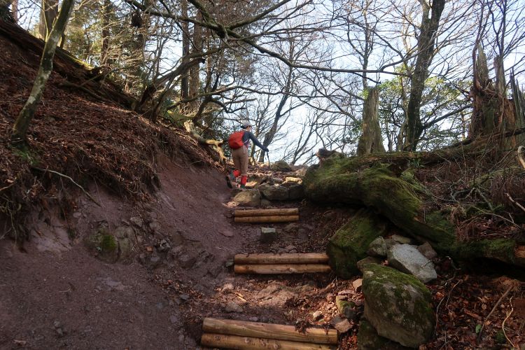 次は丸太で整備された急坂を上る。