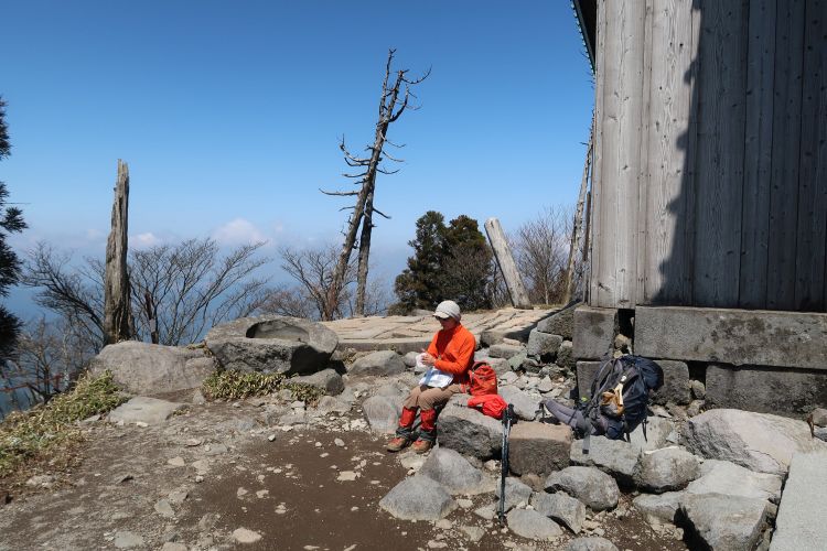 おにぎりを食べてひと休み。英彦山には3つのピークがあるが、北岳はこれから向かうコース上にないので登ってくることにした。