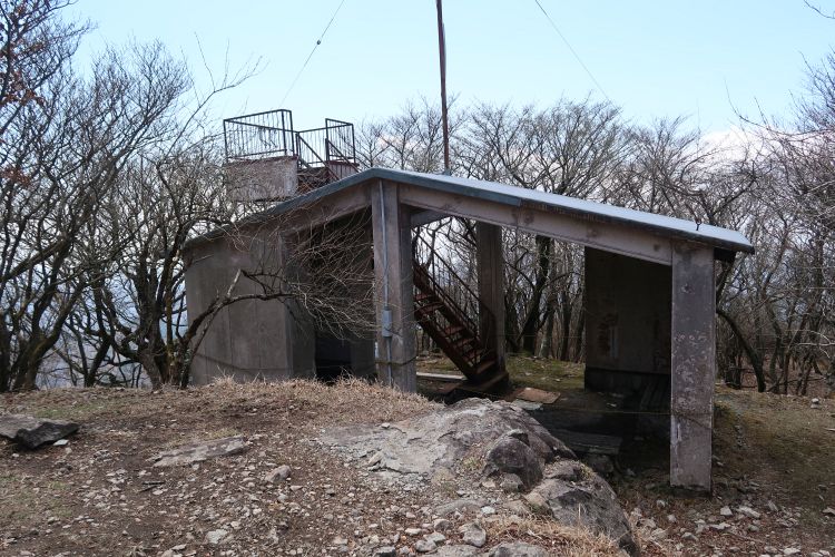 南岳山頂の朽ち果てた展望台。老朽化して危険なので、上がれないように階段に鎖が巻かれていた。