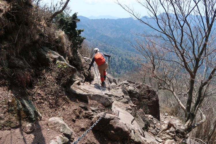 長い鎖場の急坂を下る。周囲の眺めが抜群によかった。