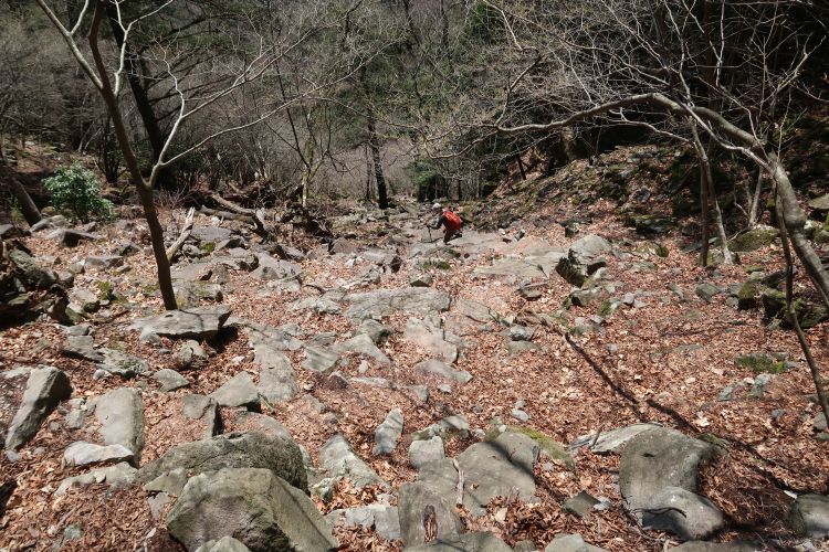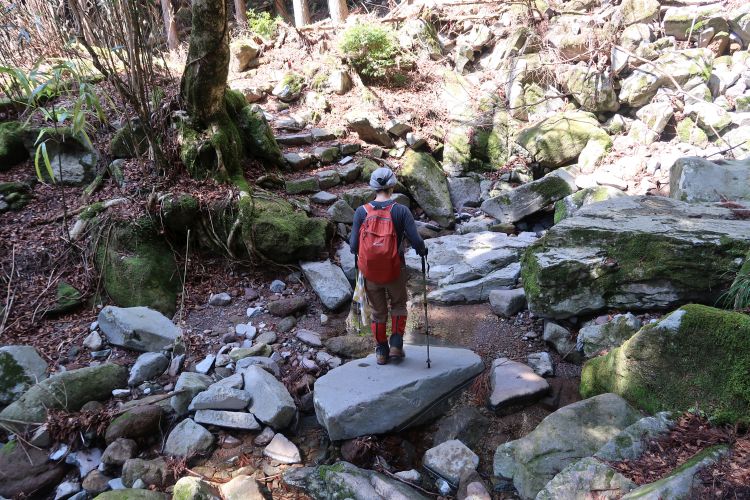 傾斜がゆるくなり、渡渉してさらに進む。