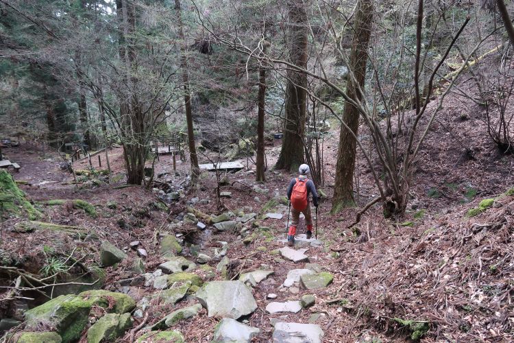 30分ほど石段を上りつめると一旦下りとなった。