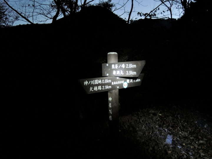 6時20分頃になるとヘッドライトがいらない明るさになった。落ち葉の下に浮石がゴロゴロあって、歩きづらい道が続く。この尾根を下りに使うのは大変だろうと感じた。