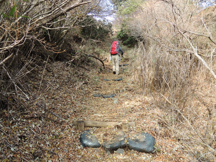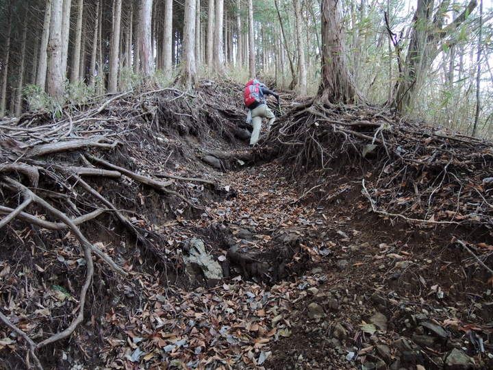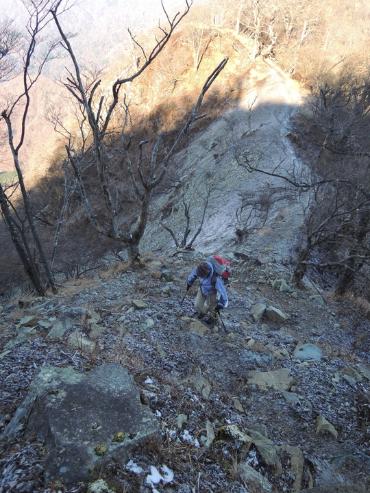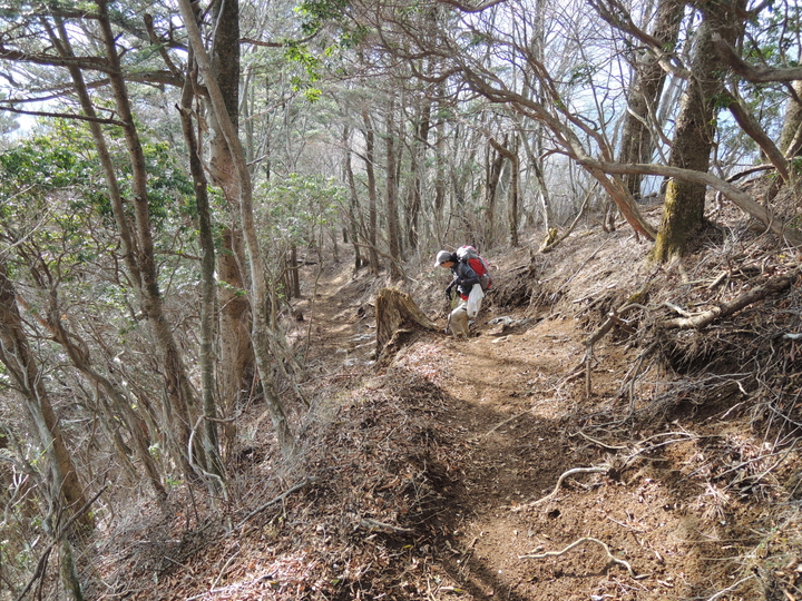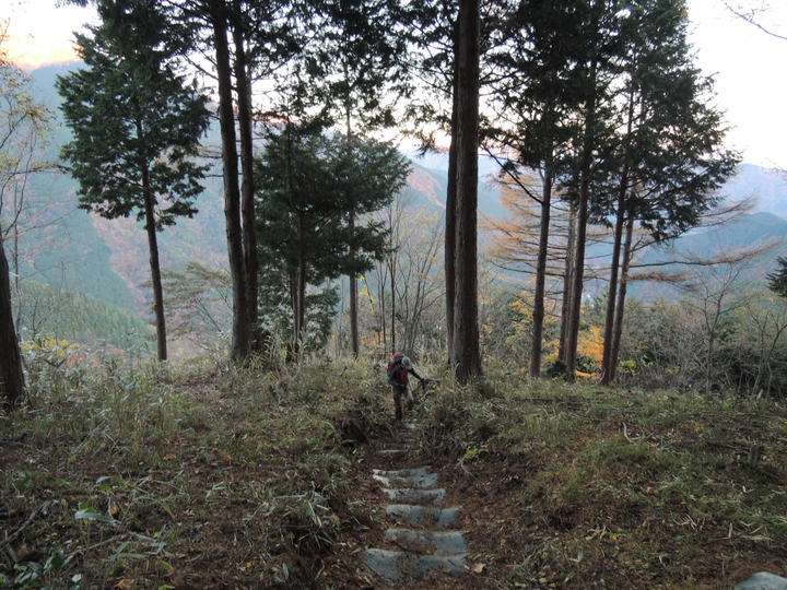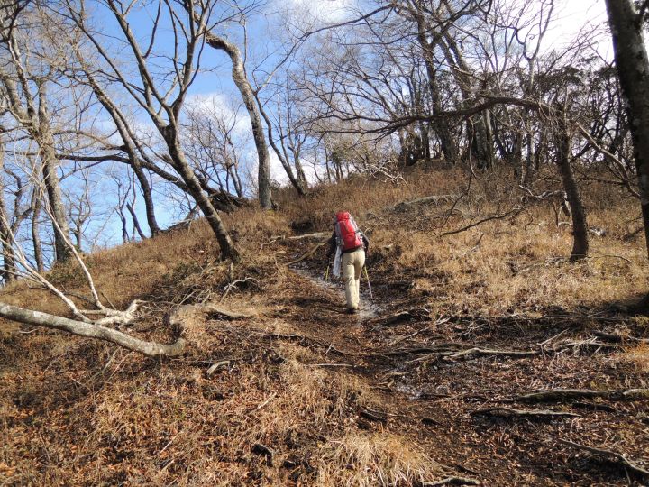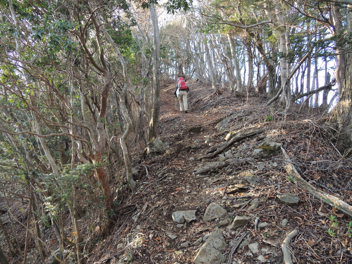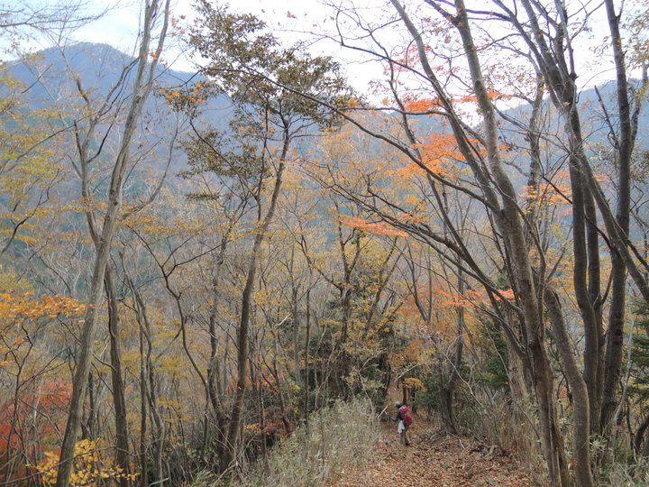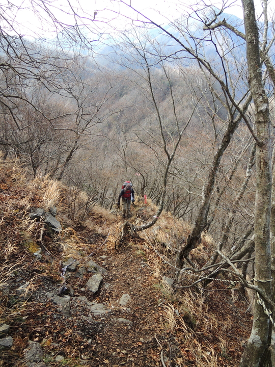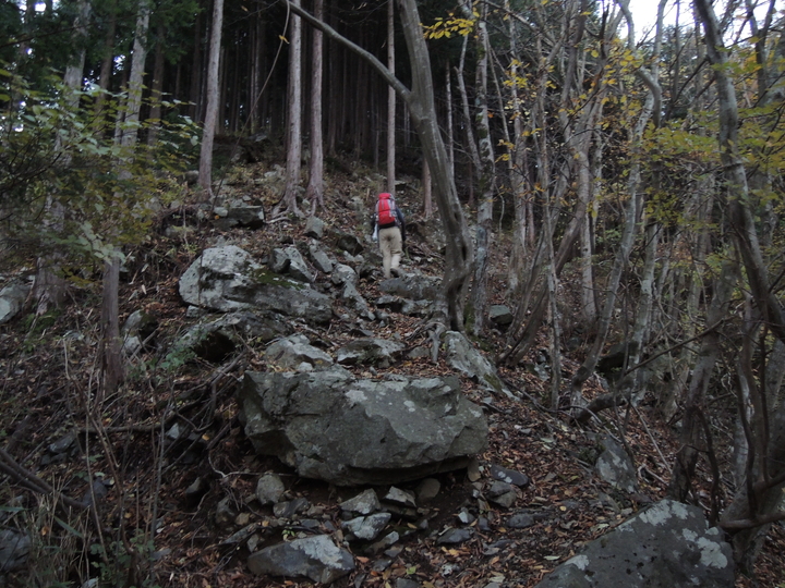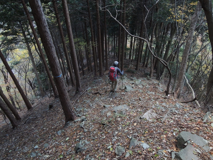 風巻ノ頭を過ぎると急な下りが続いた。枯葉に浮石が隠れているので、歩きづらかった。