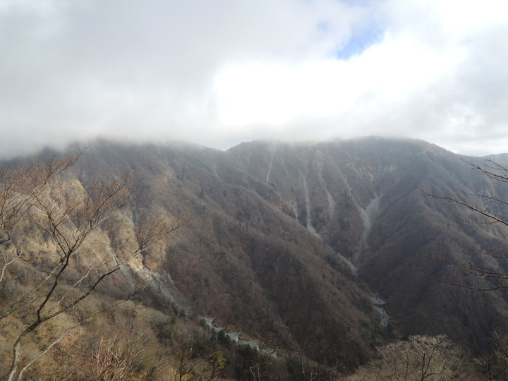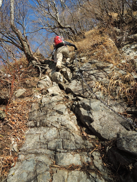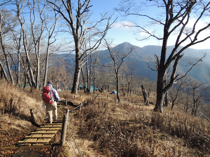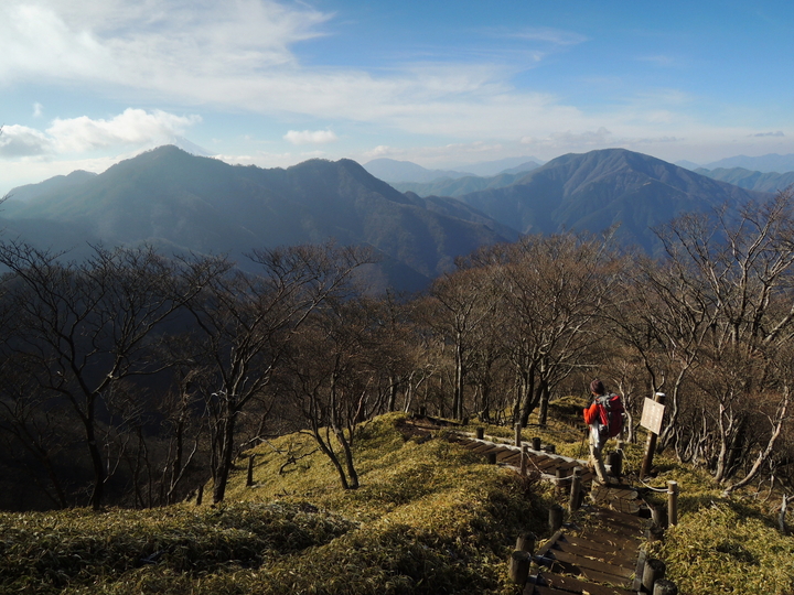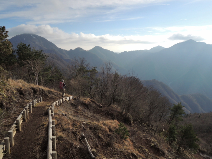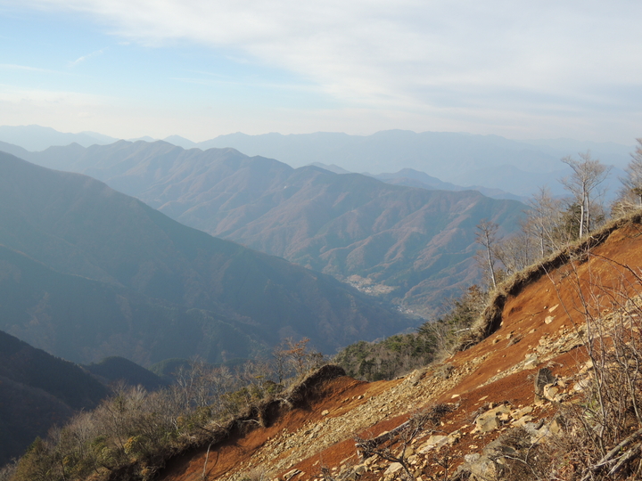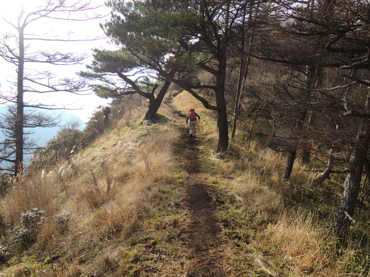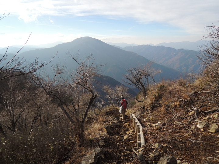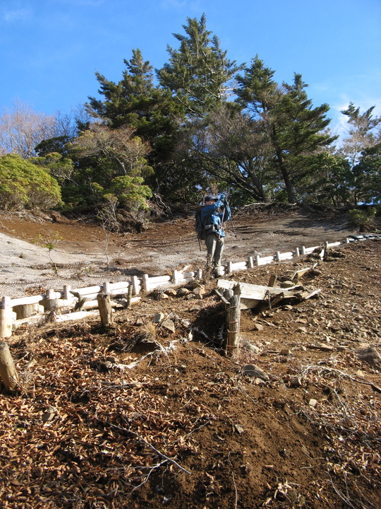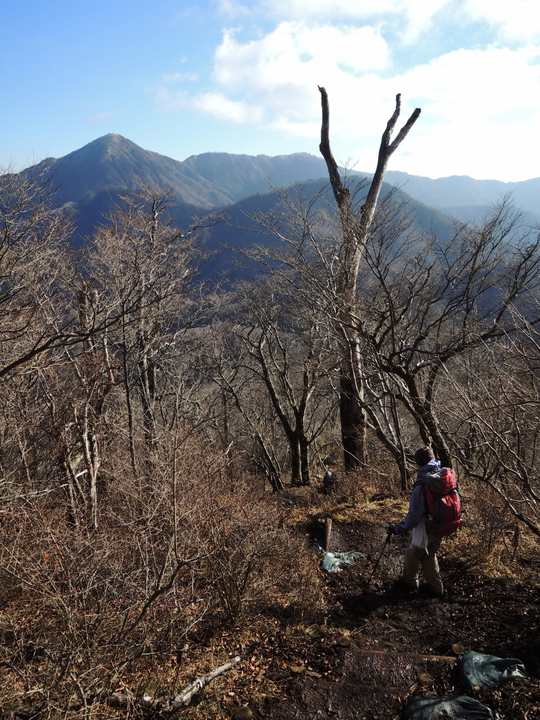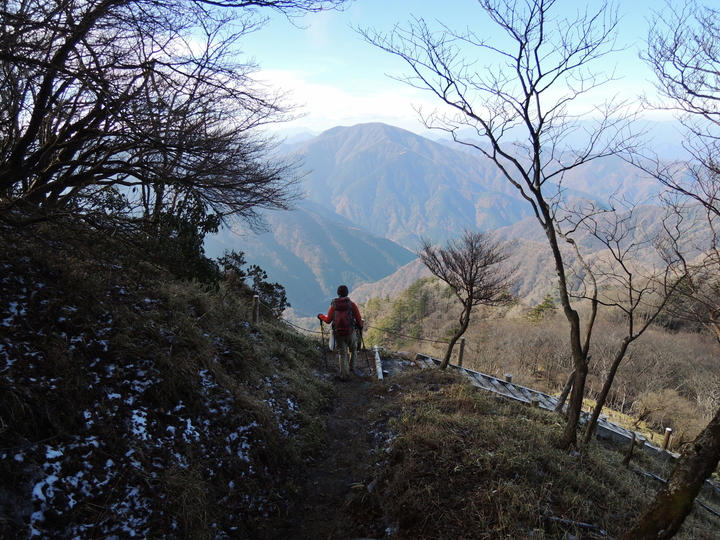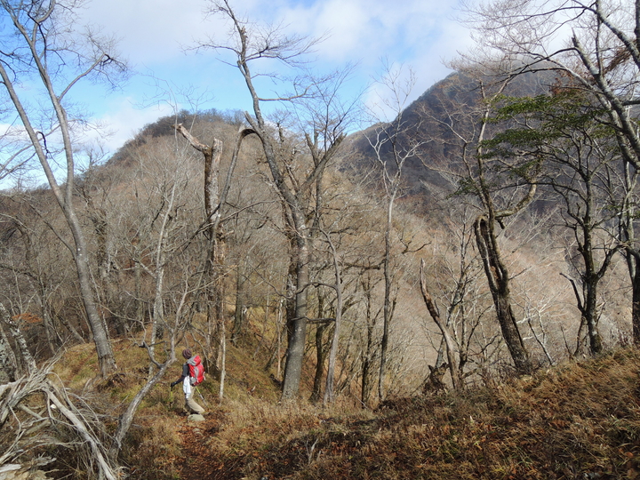 風巻ノ頭を過ぎると急な下りが続いた。枯葉に浮石が隠れているので、歩きづらかった。