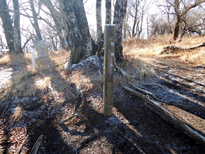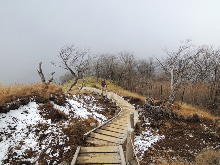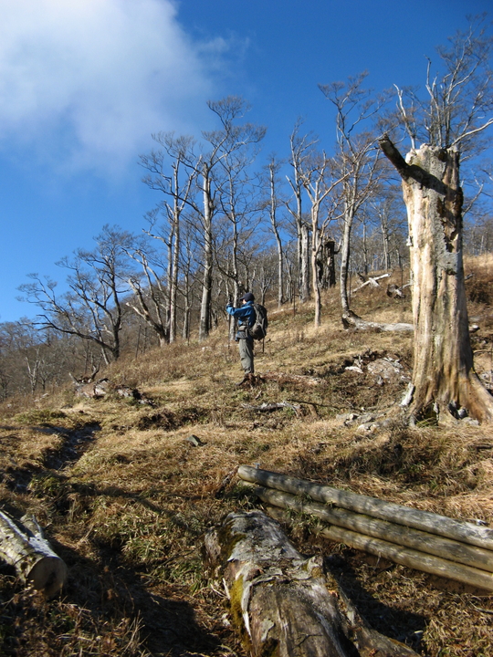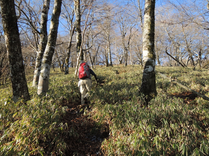 8:20 熊笹ノ峰(1,523m)に到着。正確には熊笹ノ峰の手前で、大笄(おおこうげ)との鞍部にあたるようだ。
