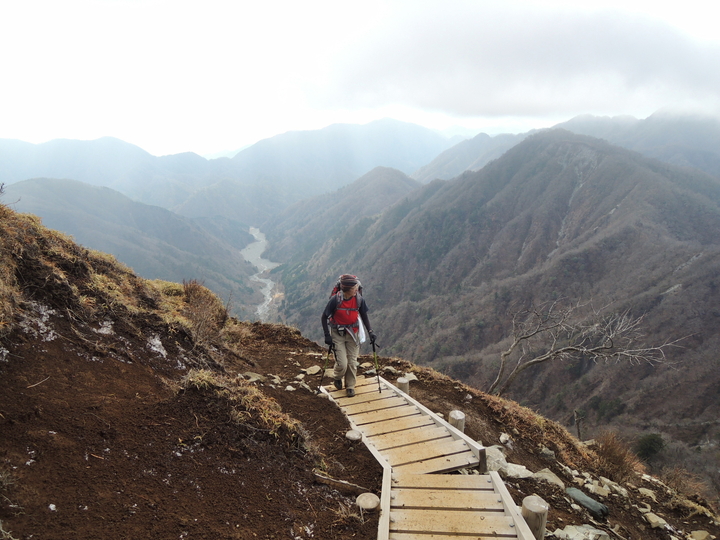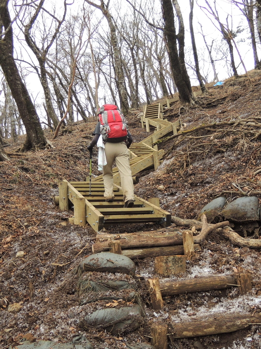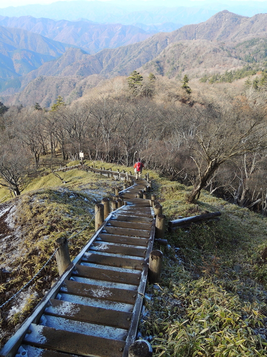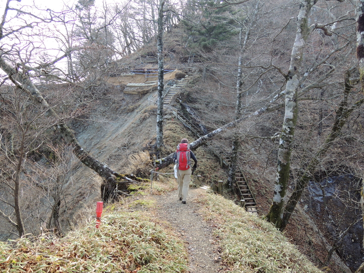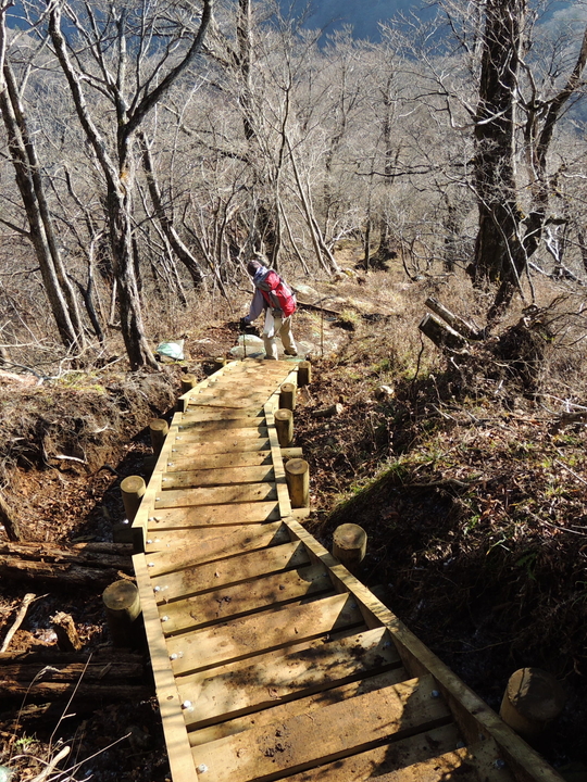 最初は木段の下りが続く。こちらの階段も真新しく、段差がそれほどでもないので案外歩きやすかった。